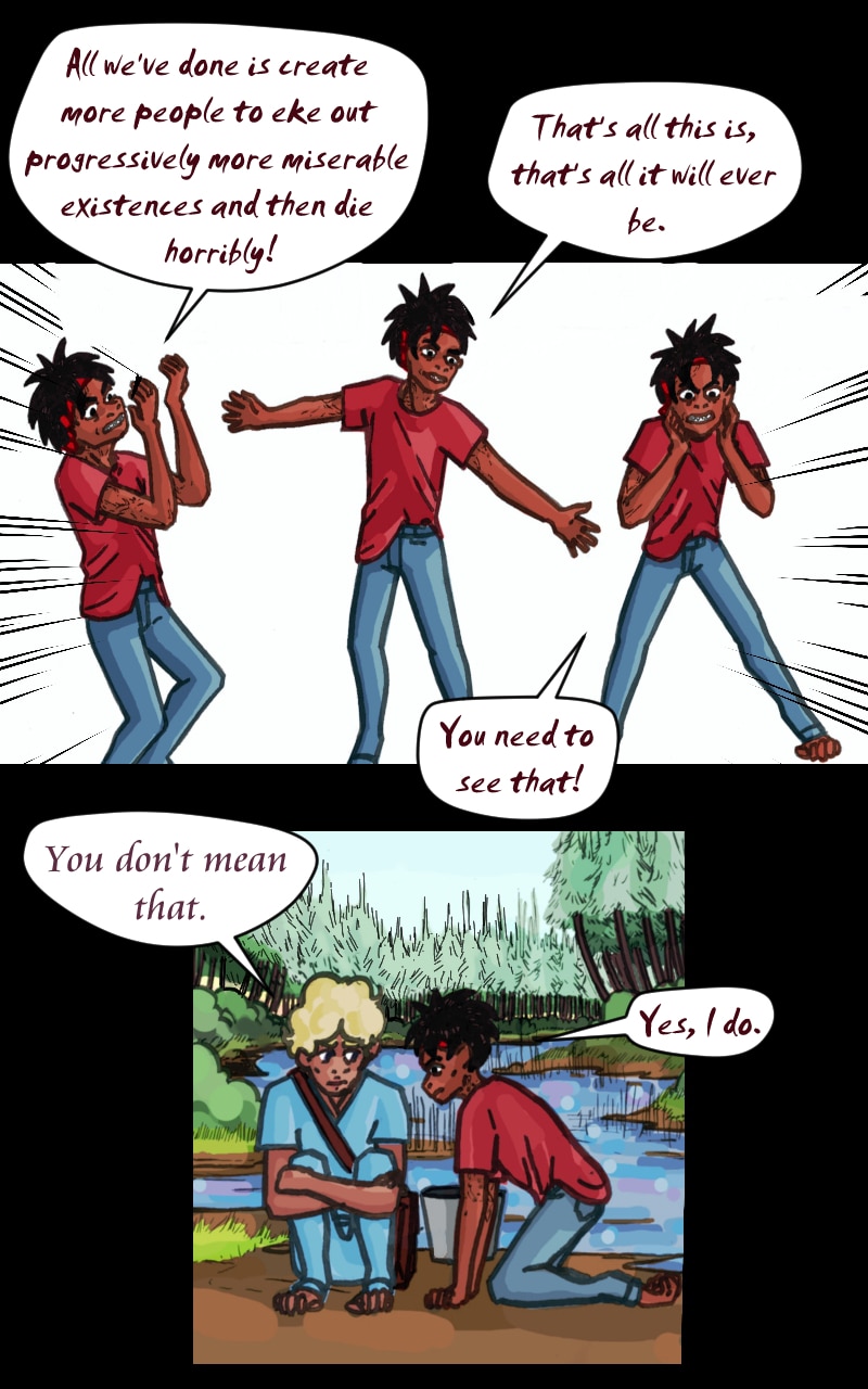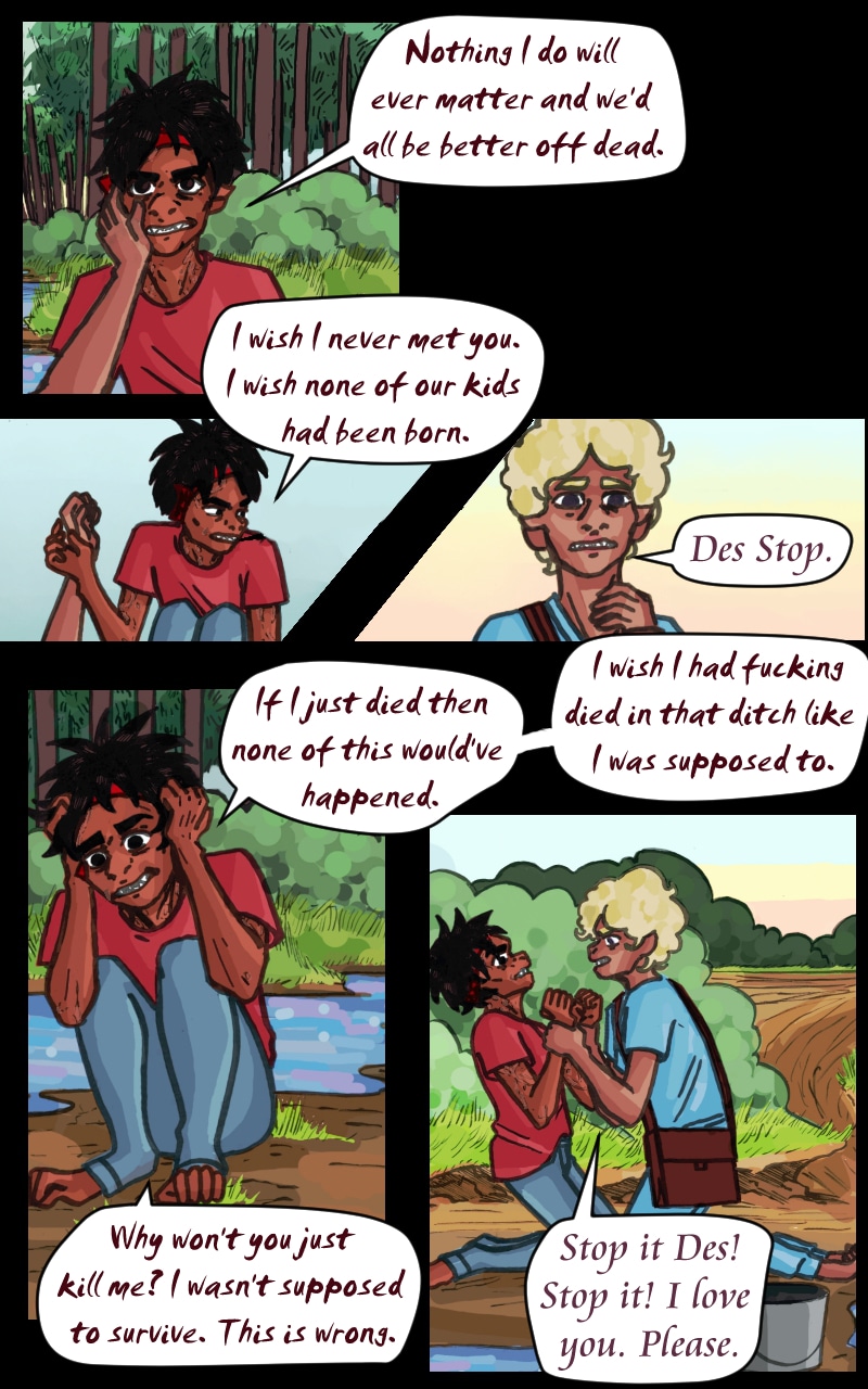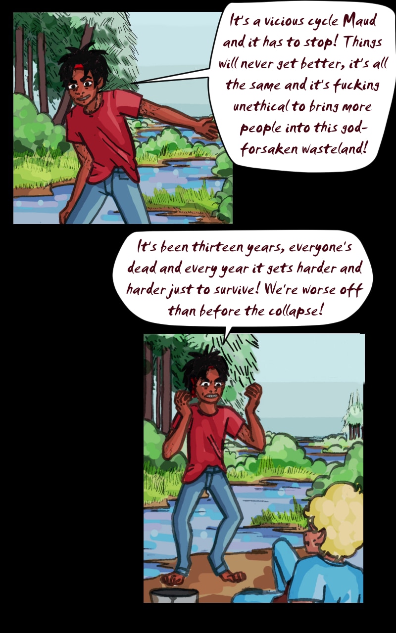This is some extremely compelling dialogue and character work. I absolutely love it. >:D This sure is one screwed-up world, and Maud and Des are just trying their best to sort things out here...