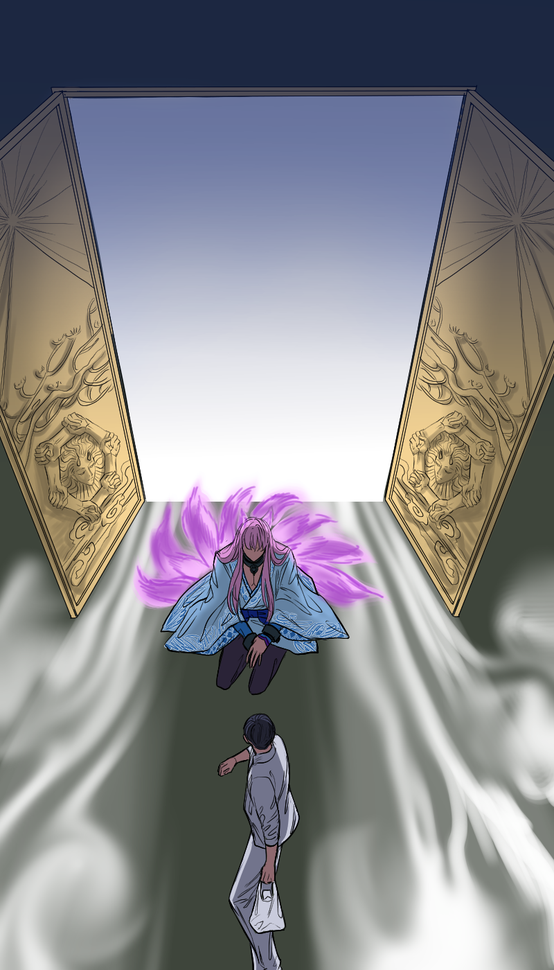 this is my new story where a fox demon fell out of a mysterious door in front of a very ordinary guy. this is a light story of their sweet relationship.