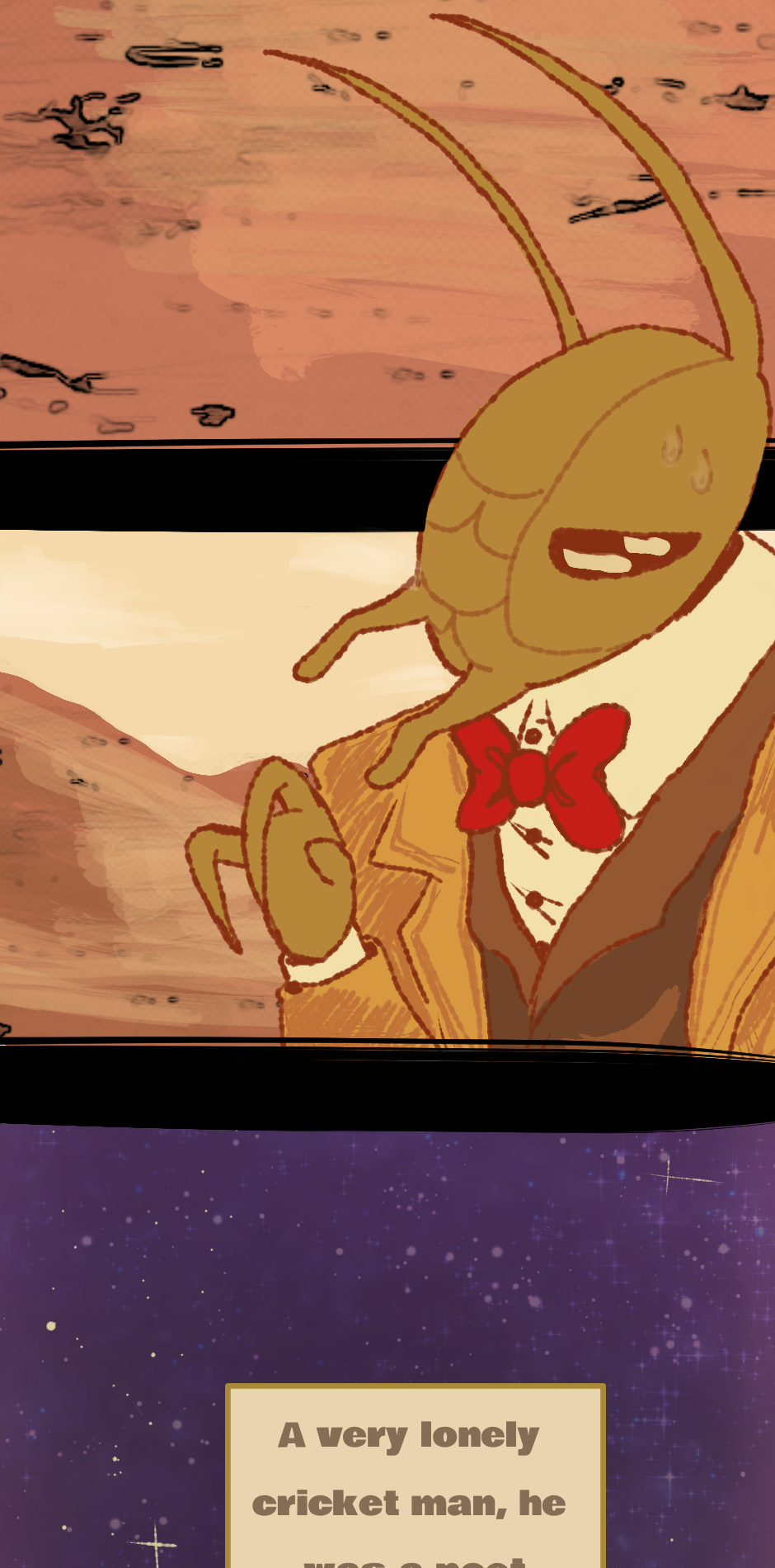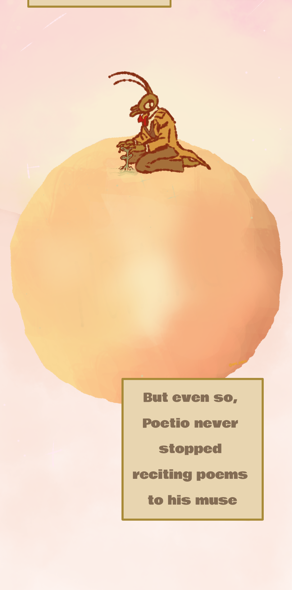 Meet Poetio, an immortal cricket man, a poet with a sensitive and sweet heart. He lives in a different dimension, it's not heaven or hell. Adventures full of magic, fantasy, morals and dreams. Poetio will seek to protect his garden from any threat and along the way he will delve into his past to discover who he was before, and how did it get there.