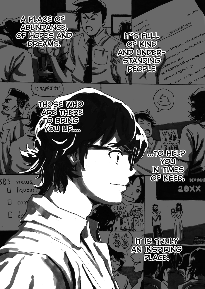 I can't remember what this comic was for. It was for some comic convention at my place. In coming up with an idea, I suddenly felt overwhelmed with sadness, reminiscing my seemingly long and futile journey as an artist. I just bolted up and drafted the whole 8 pages within 30 minutes. The rest was just production. Looking back, it could be improved. But I'm laying this to rest here.