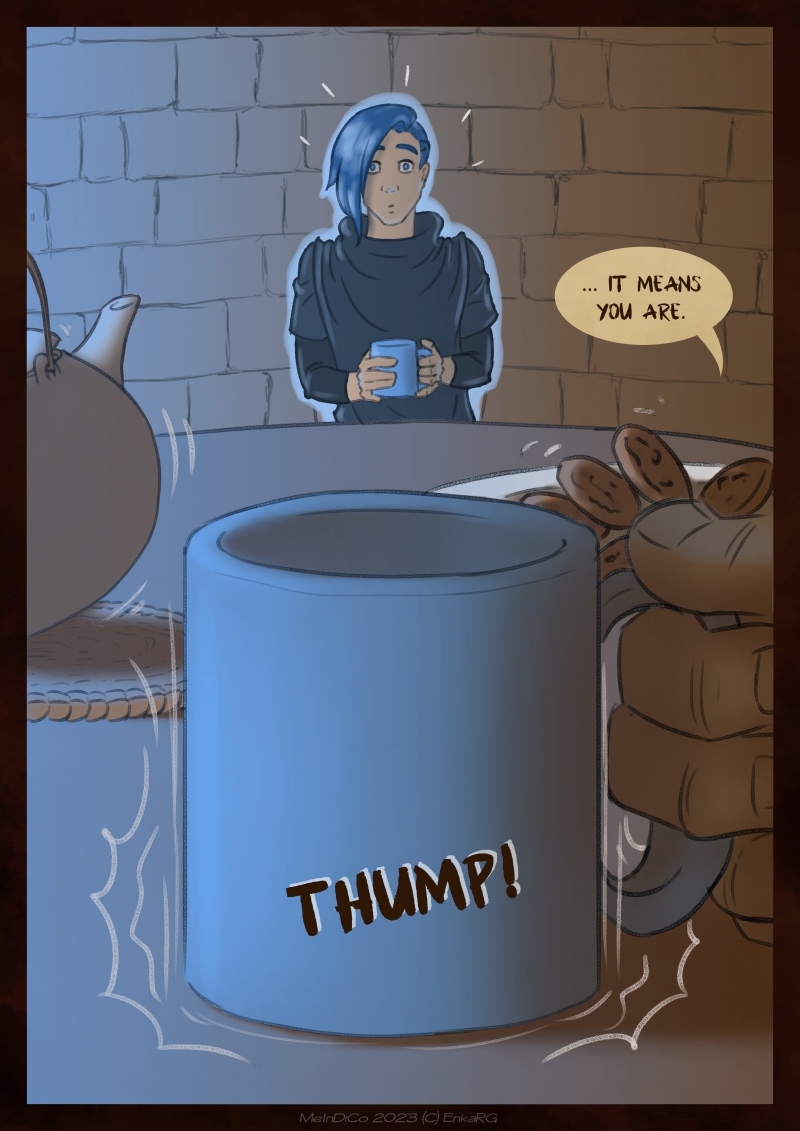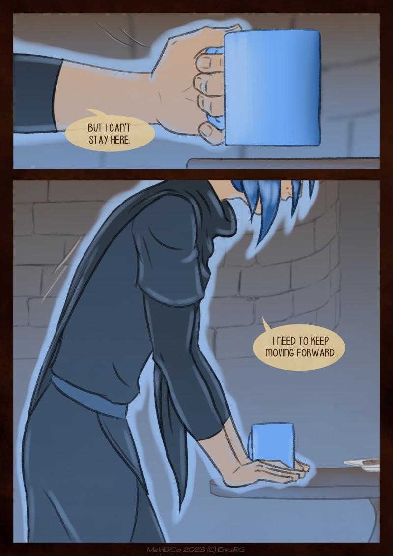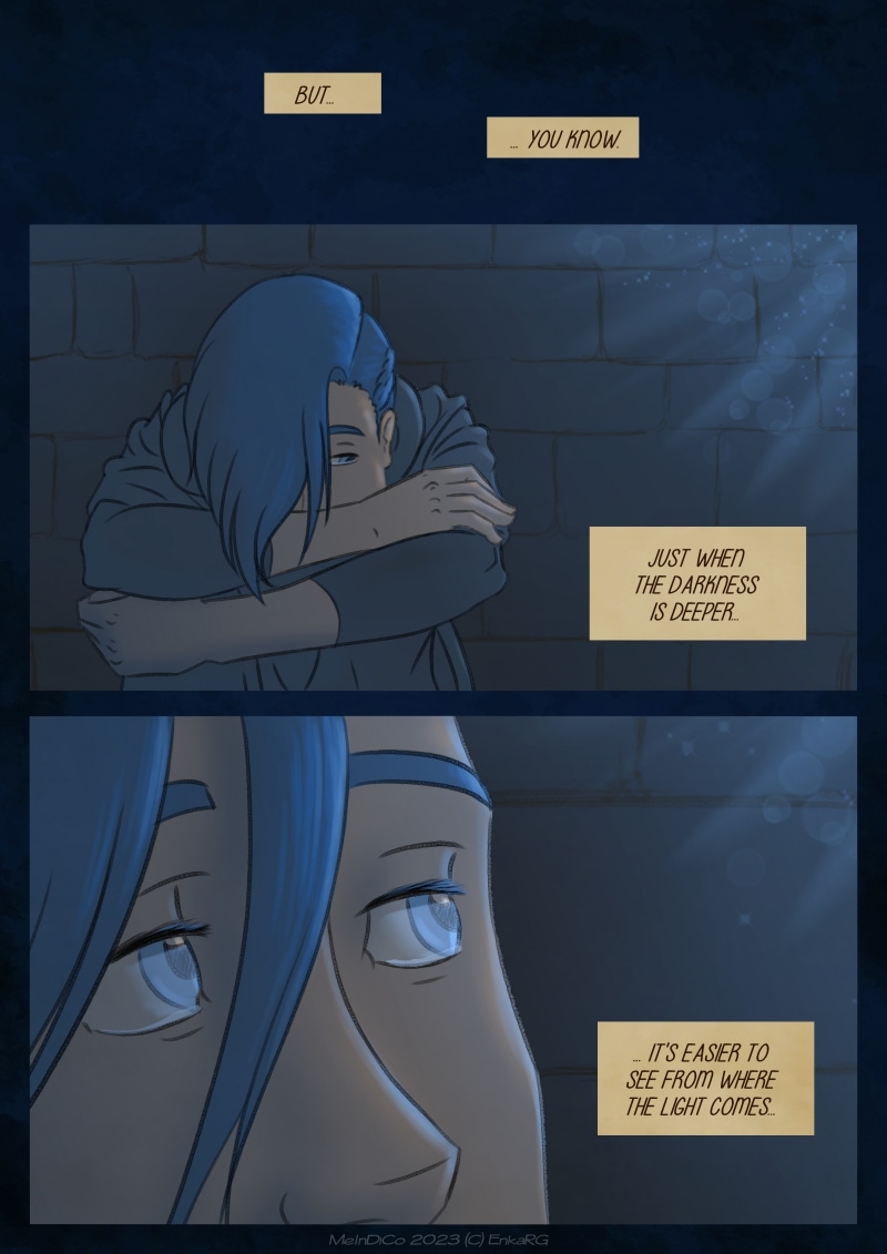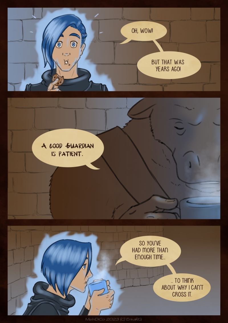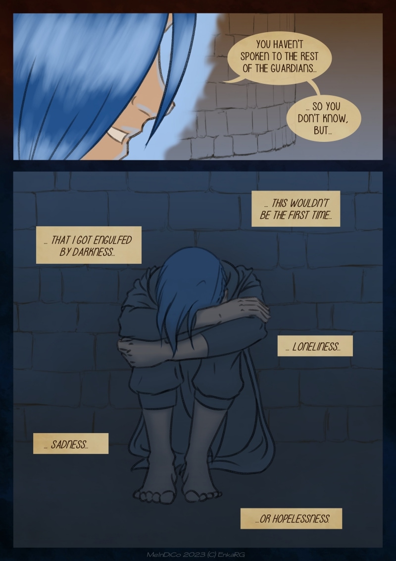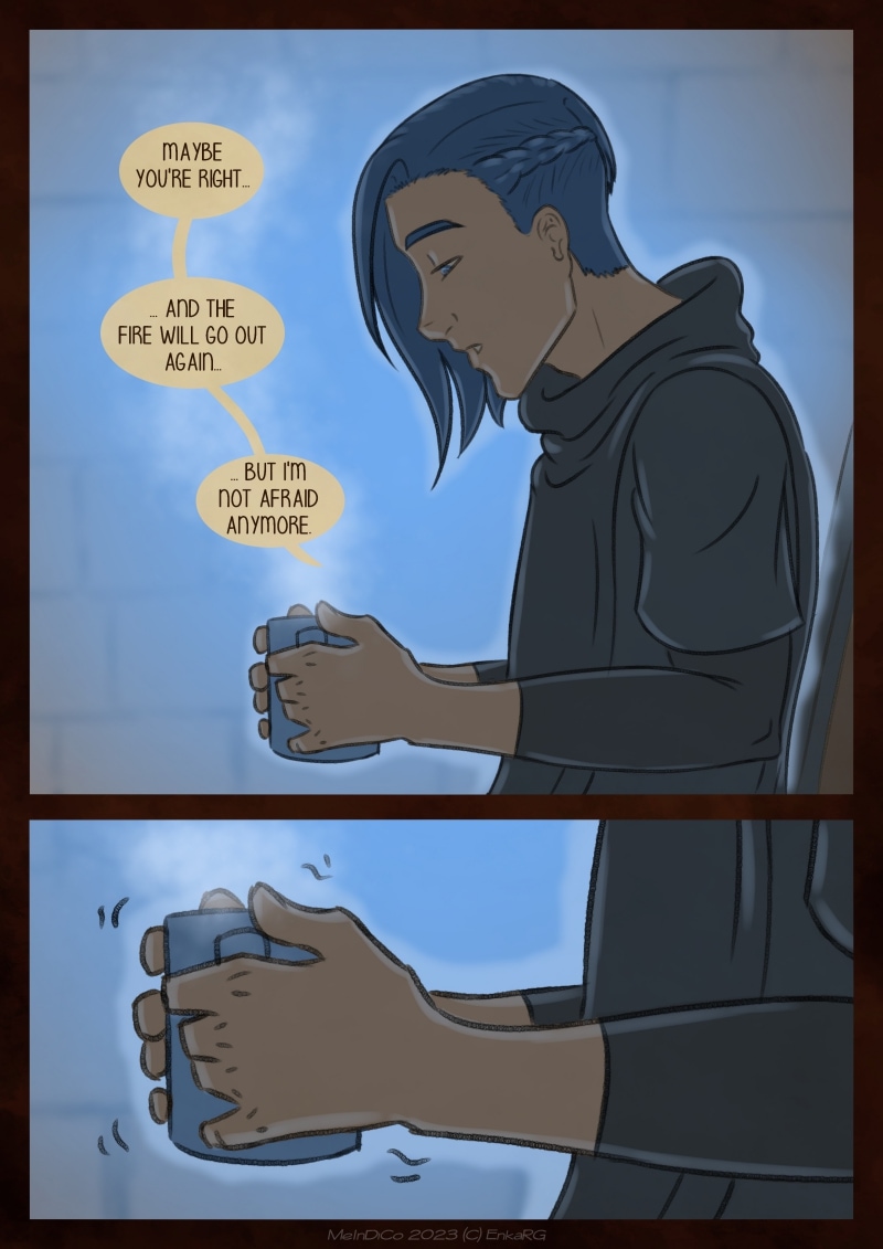 I made this comic with the idea of showing the well known metaphor of the labyrynth for our journey in life, and the minotaur as the guardian who makes sure we really are on the path we want to be in. I wanted to portray a non-binary character who could embody the essence of any person who walks forward, with their fear as an ally. And, well, also because I personally needed Phoenix to be non-binary ^^U