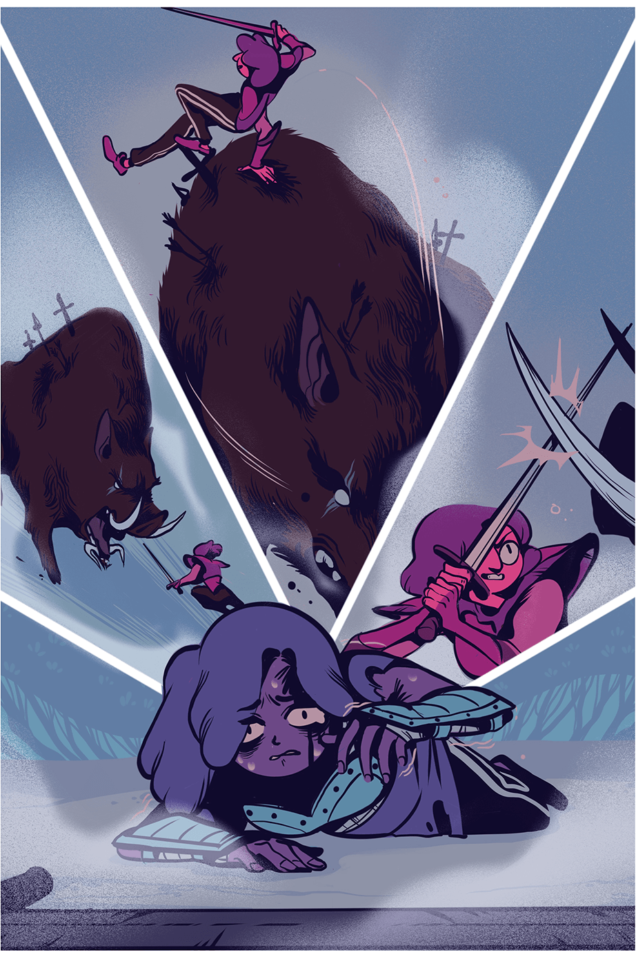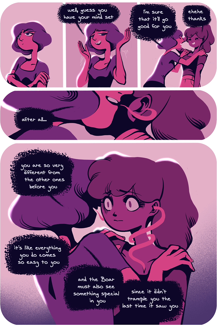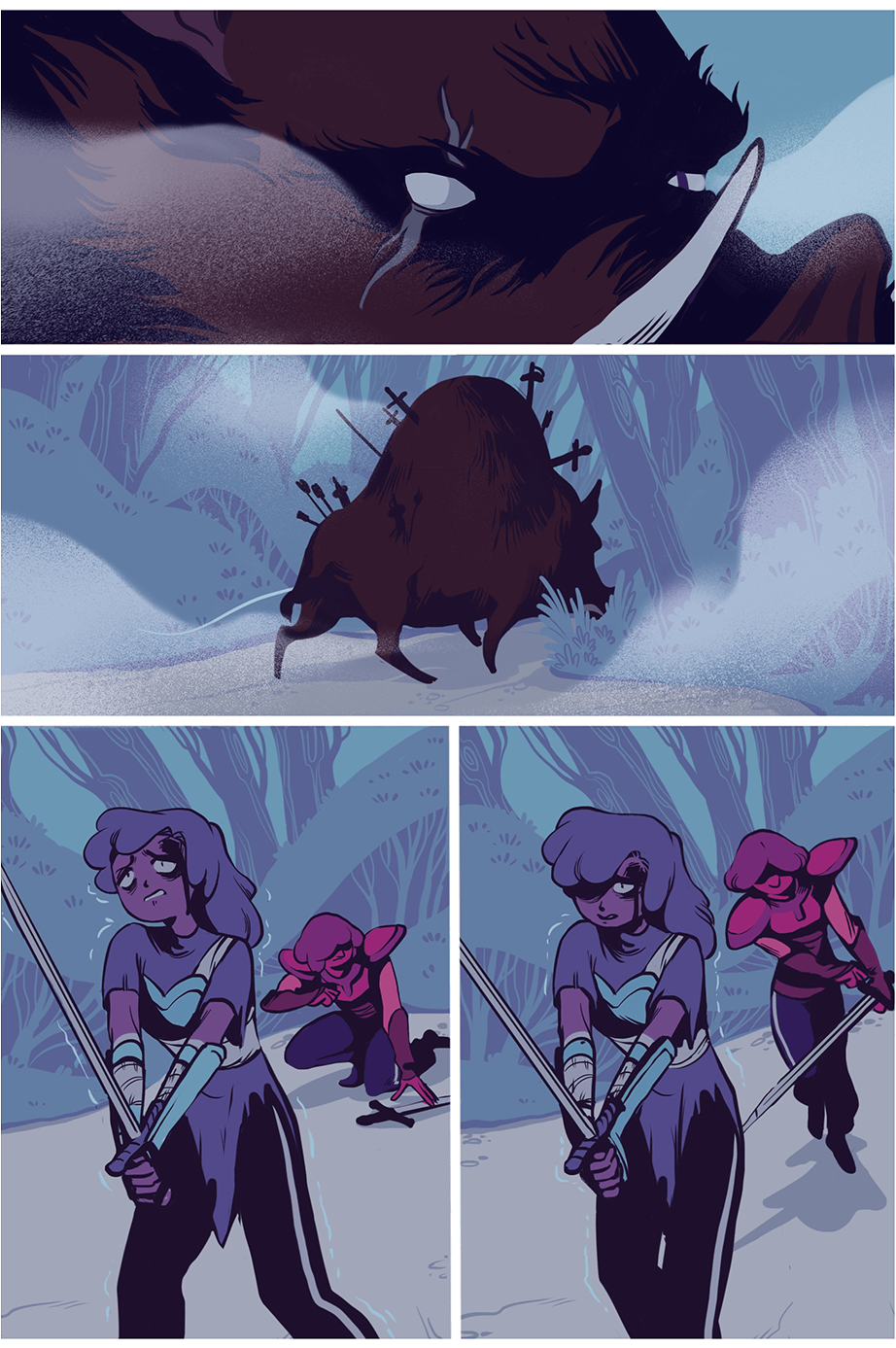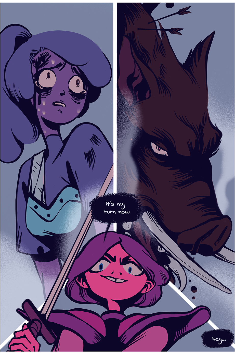 Did the blue start taking over the short-haired girl too? It seems that's when they begin losing their confidence and the Boar is unattainable at that point.