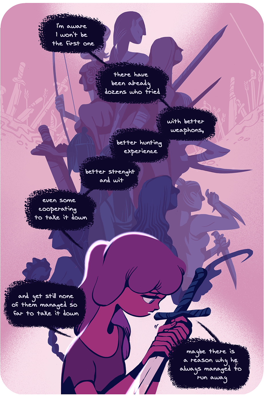 A simple oneshot about hunting a boar. Or is it? I wanted to write a story that would be more metaphorical, don't know if I managed to do that tho... The original title was "the Traitor" but it was way back when I sketched the thing. Got some time to think about the whole plot and the whole original bitter concept diluted a bit to what I have here. Generally the cole concept of pursuing someone can be a lot of the times something you do to boost your ego. That's probably why it hurts so much more when you fail in the end. Anyway, enough of my ramblings, tell what you thought about it! I know I'm bad at posting and responding to comments but I read every one of them and I'm so happy you want to share your thoughts with me about the stuff I post.