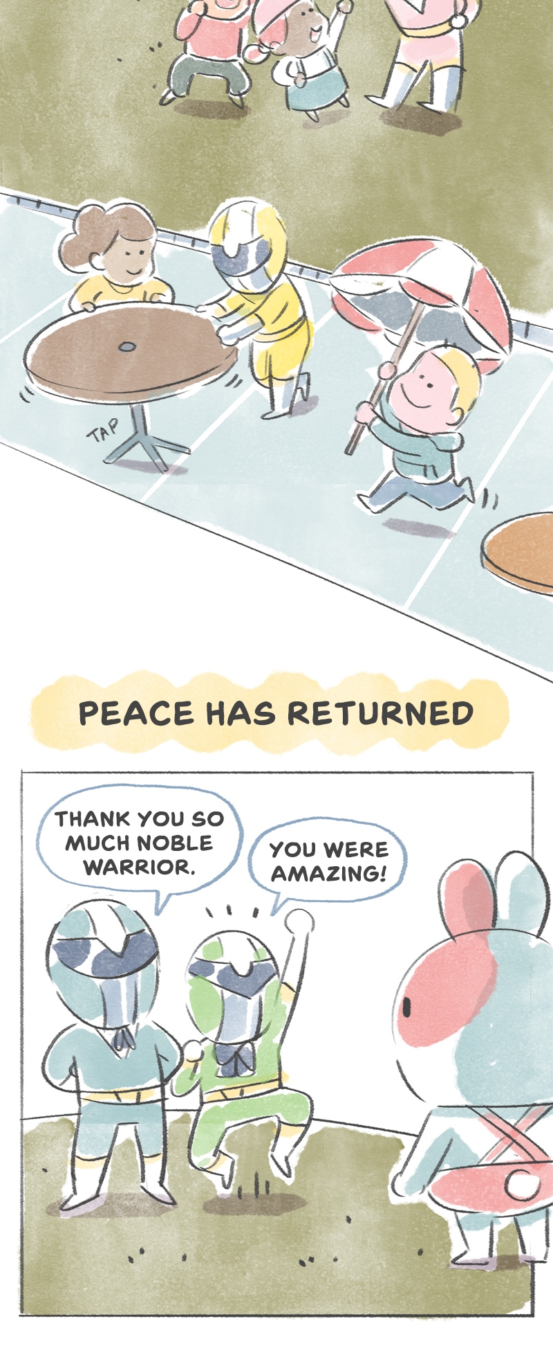 Hello! This is the first one-shot action comic I have ever made. It has been a really fun and challenging experience. I hope you enjoy this story! ✌️✌️✌️ And don't forget to check my current webcomic "Capy's Book Club" and "Fluffy Hashtags", right here on Tapas :3 Thank you!