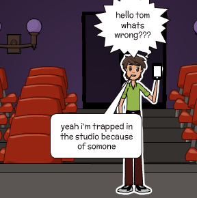 tom gets locked up in his TV-studio. because of his kids