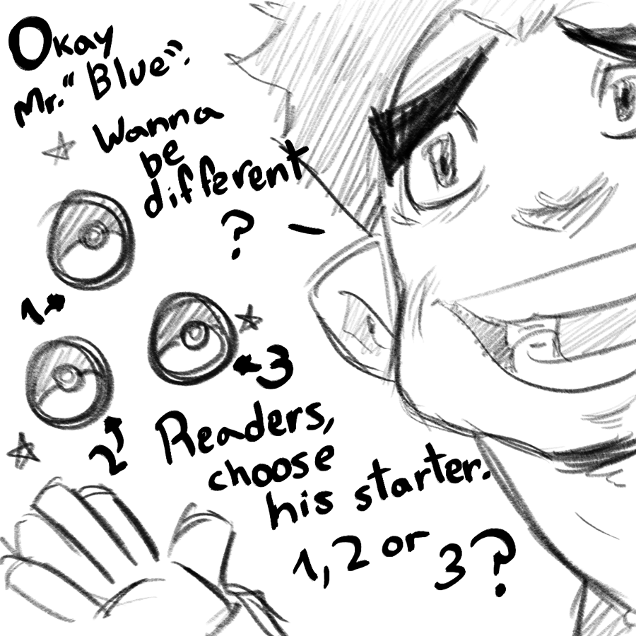 This is a pokemon story in which you choose the destiny of our pokemon trainer: Blue! Original name huh??? I will give you choices, and you choose what you want to happen c: HELP BLUE BE THE VERY BEST! MAYBE!