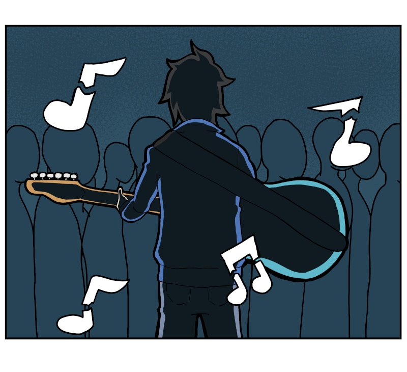 Our hero Adam is a high school dropout who is trying to make it as a musician but with no singing voice and being a horrible guitarist despite practising for over 2 years. When he seems to be at his lowest point, his life then forever changes once his guitr is struck by lightning.