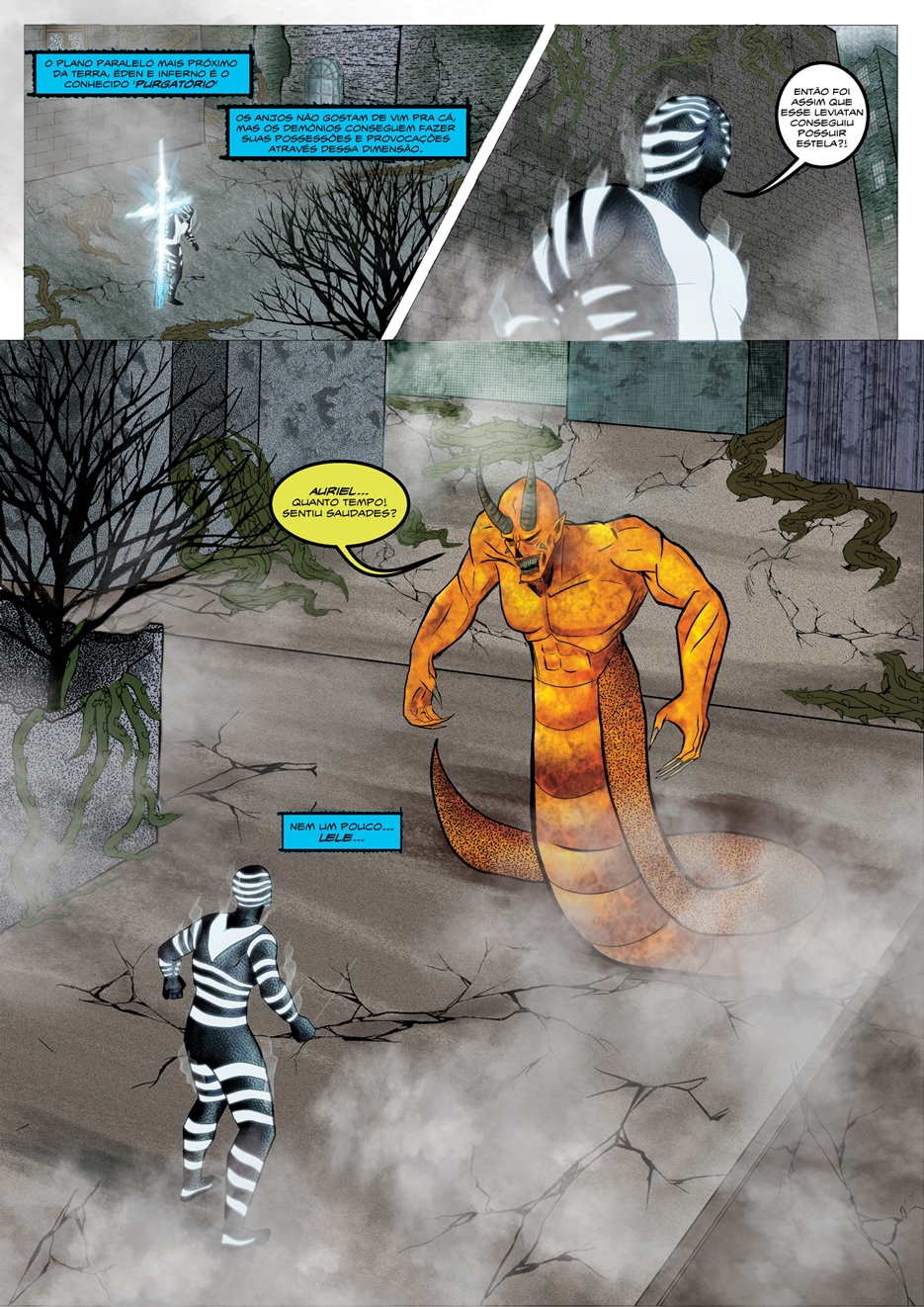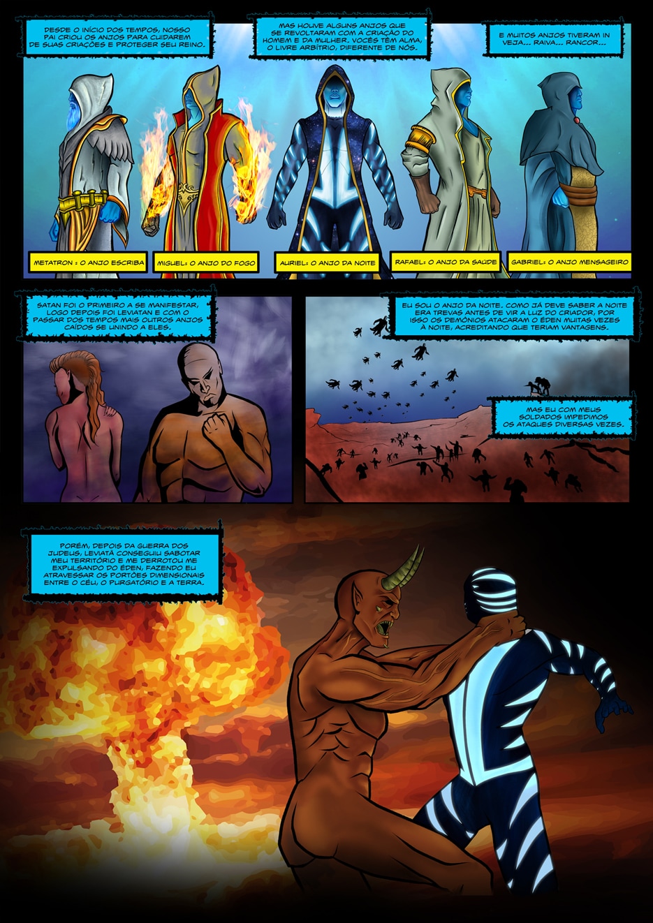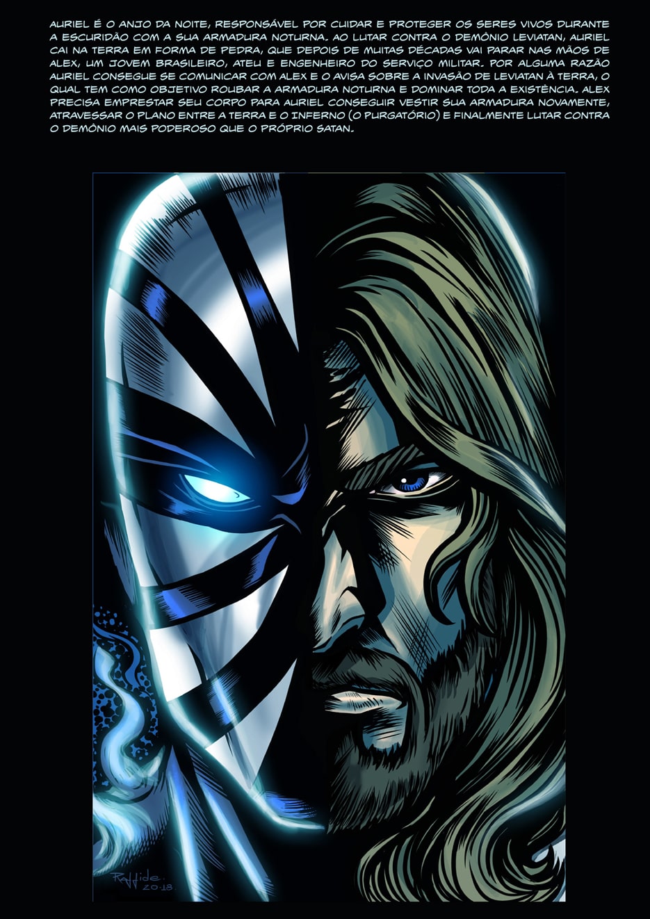 Auriel é o anjo da noite, responsável por cuidar e proteger os seres vivos durante a escuridão com a sua armadura noturna. Ao lutar contra o demônio Leviatan, Auriel cai na Terra em forma de pedra, que depois de muitas décadas vai parar nas mãos de Alex, um jovem brasileiro, ateu e engenheiro do serviço militar. Por alguma razão Auriel consegue se comunicar com Alex e o avisa sobre a invasão de Leviatan à Terra, o qual tem como objetivo roubar a armadura noturna e dominar toda a existência. Alex precisa emprestar seu corpo para Auriel conseguir vestir sua armadura novamente, atravessar o plano entre a Terra e o Inferno (o Purgatório) e finalmente lutar contra o demônio mais poderoso que o próprio Satan.