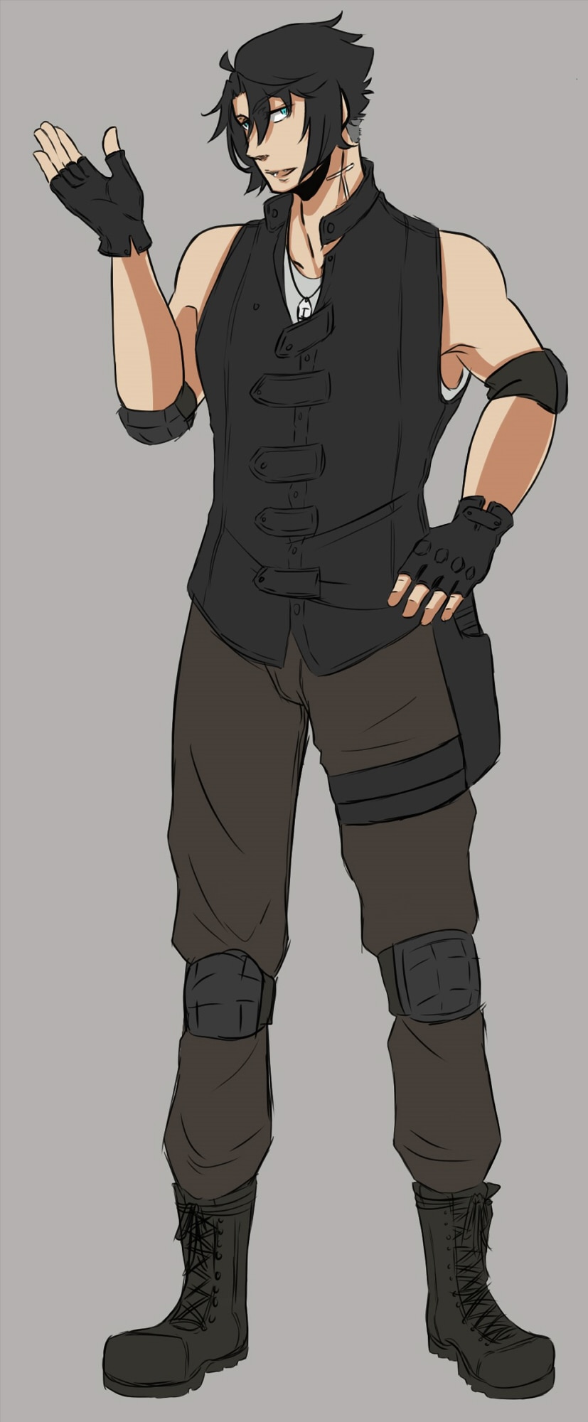 Character design for one of the protagonists of the story, Tempus, including initial paper sketches versus his final design.