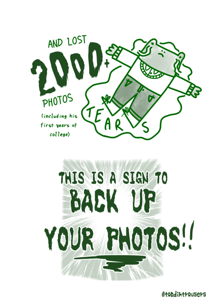 I did the silliest thing ever and lost three years' worth of photos (including my first years of college, but at least I haven't graduated yet). This is a sign to back up your photos right now! Do it!