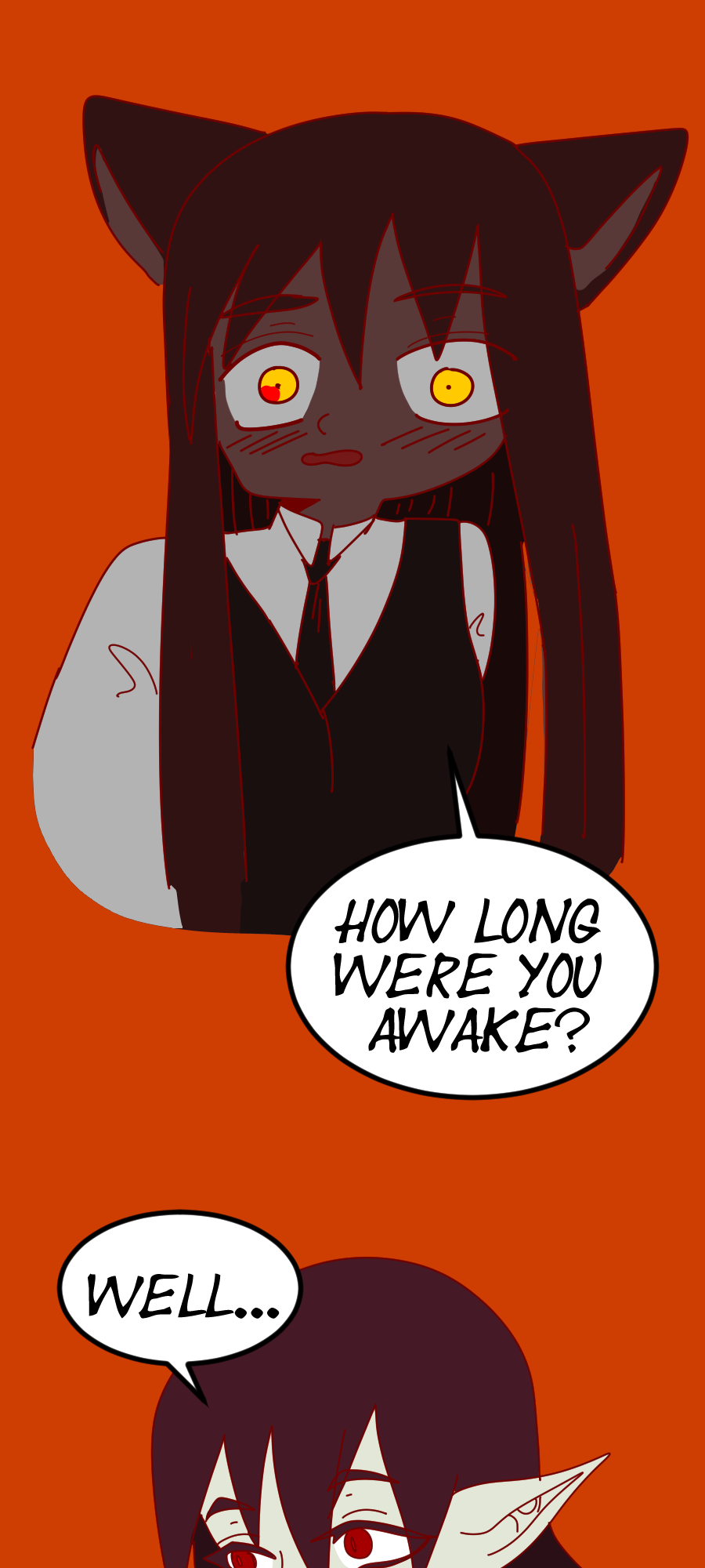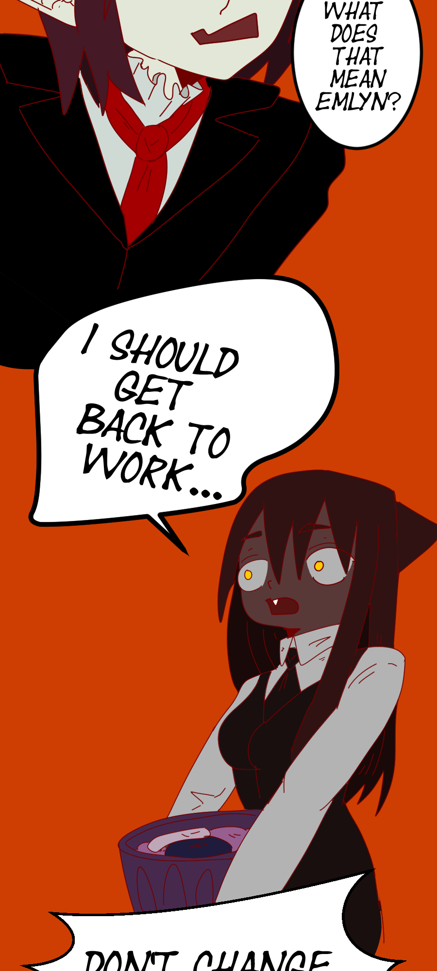 This is a world where Halloween creatures like vampires, werewolves, witches, and many more are not considered monsters but as their own set of races, cultures, traits, and ways of life that clash and overlap in different ways. Here, we follow Emlyn on her travels through this confusing world she's learned to be comfortable in. Emlyn is a werewolf without a tribe aside from her elderly grandmother.