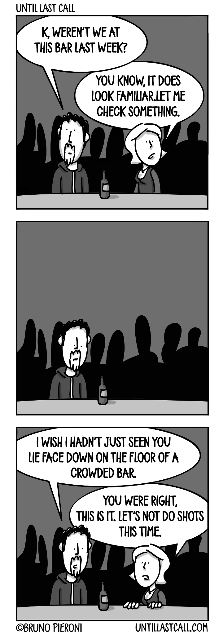 "K, weren't we at this bar last week?"