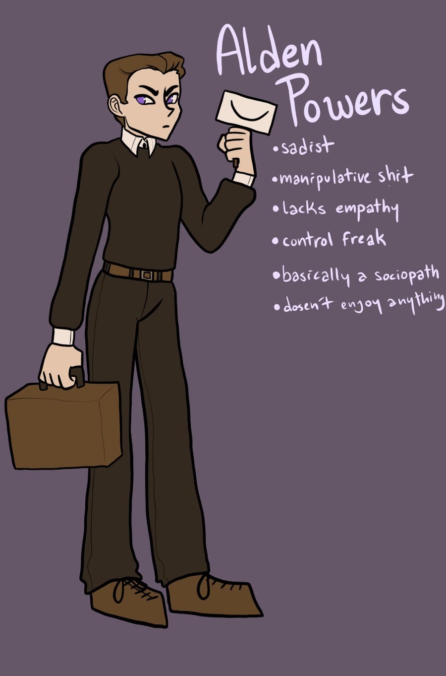 Basically, it's inside out but they're not in my head and it's really really sad. So, these guys are all manifestations of my different destructive moods. At any point in time, I am some combination of these characters. Originally, they were just made as coping mechanisms, but i've made enough random comics out of their dynamics to make it uh... a thing... so heres that thing