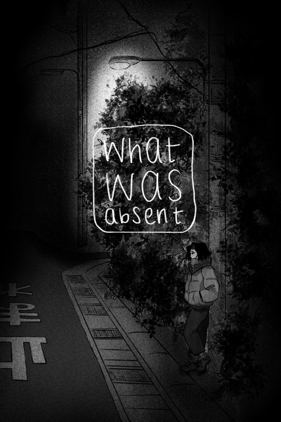 The streetlight to highlight the title, and the surrounding darkness, really communicates loneliness