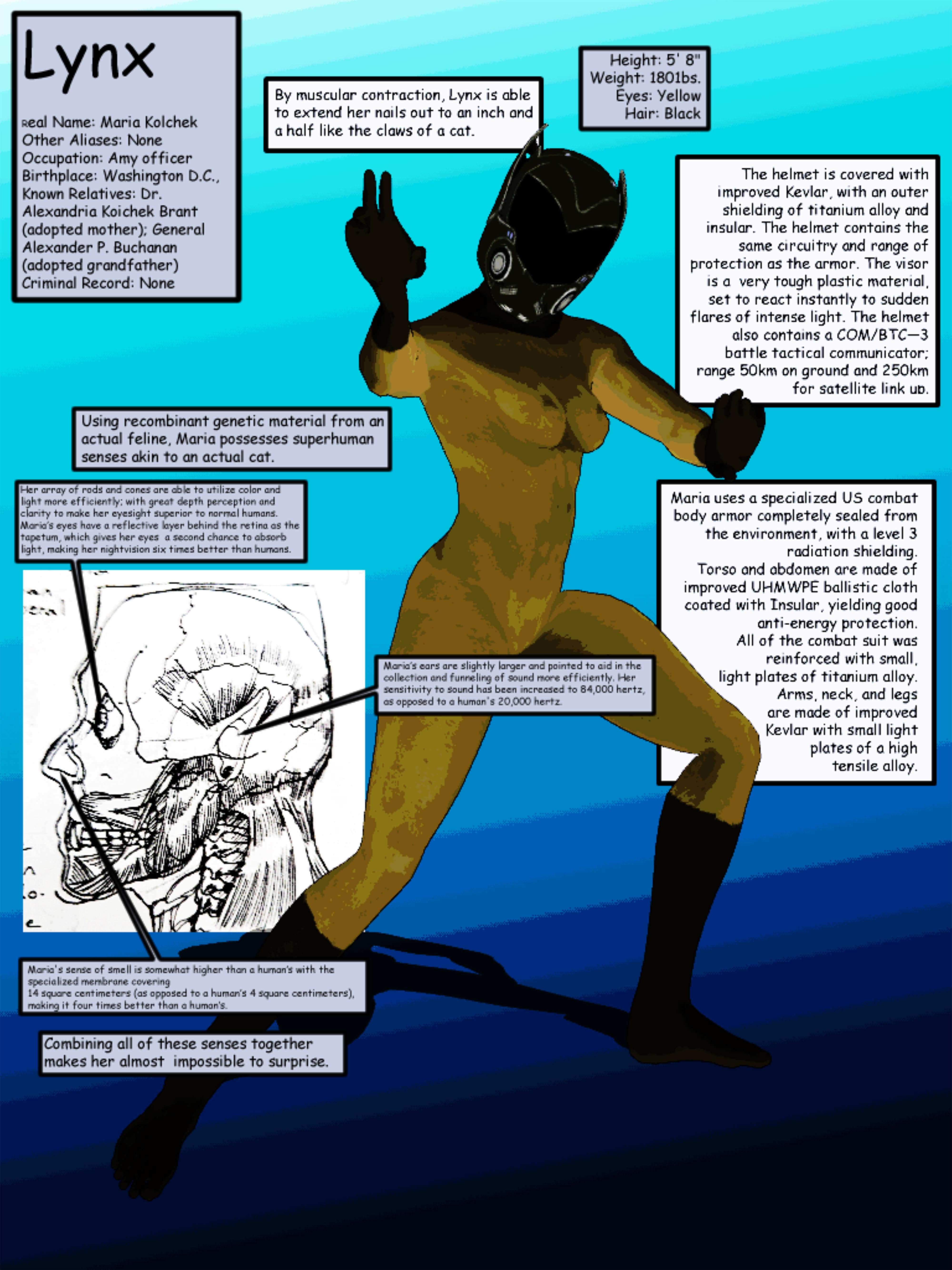 Now that Chapter One is out, I can fully show the evolution of Lynx aka Maria Kolchek.