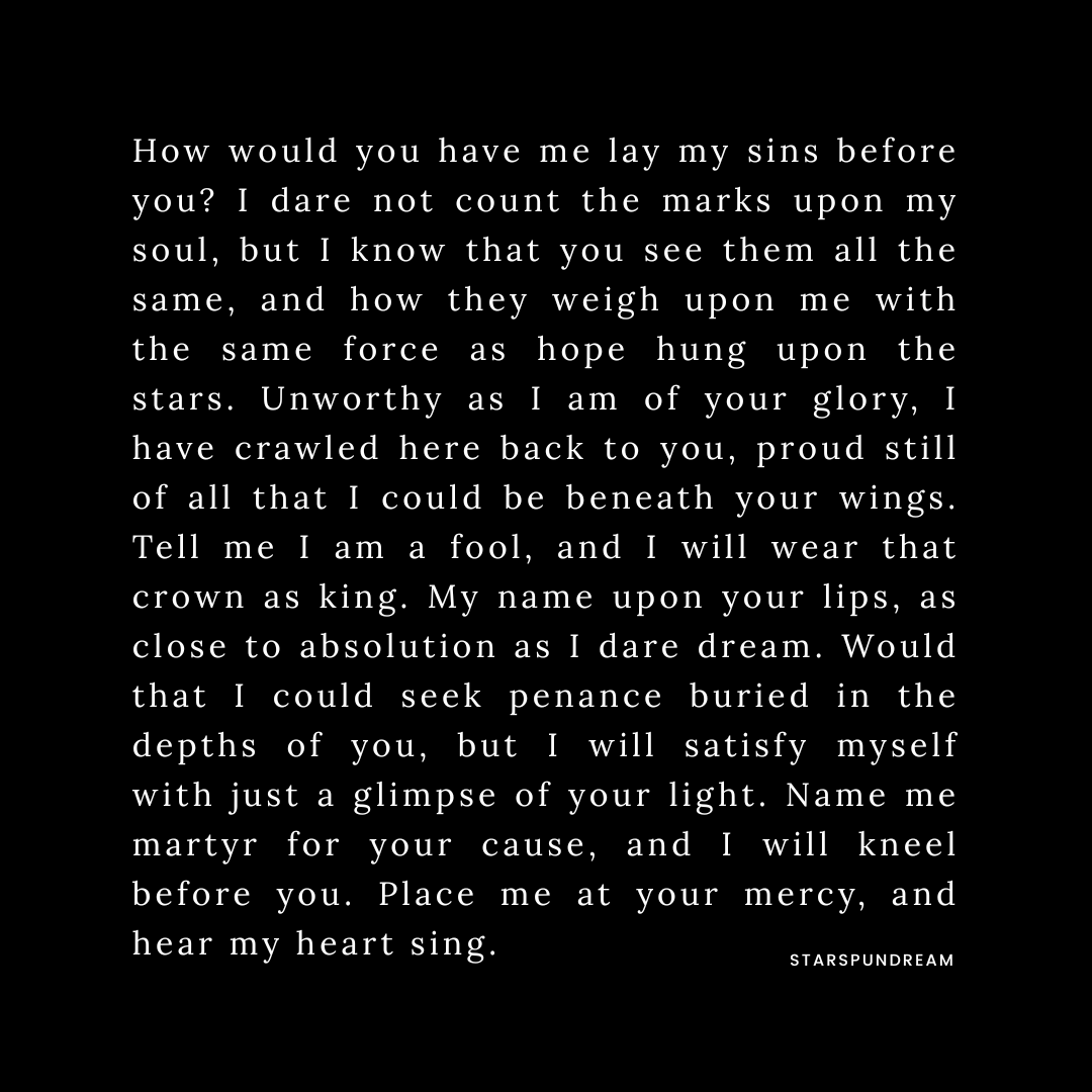 The next chapter should be out next week with a return to Eli's perspective on these recent...developments. 👀 But in the meantime, more poetically inclined thoughts: